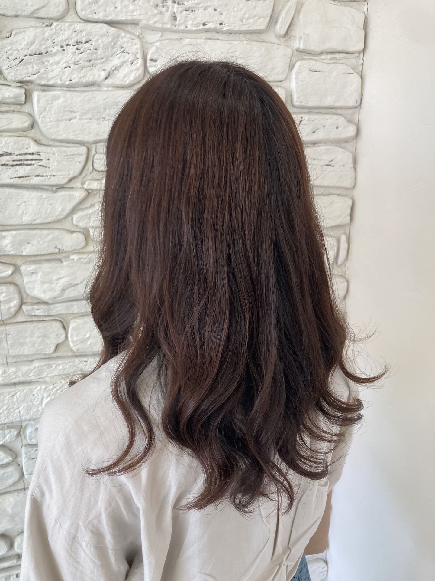 グラデーションカラーにすることにより、巻いた時に毛先の動きを可愛く演出。ドライヤー前のお手入れは《COTA STYLING BASE》でしっかりと水分補給と栄養補給がオススメ。